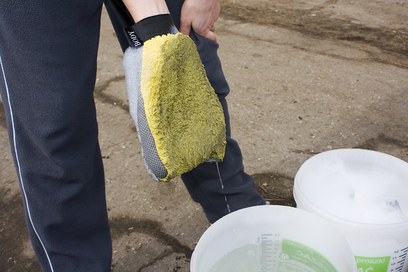 - Przygotuj dwa wiadra, rękawicę z mikrofibry oraz szampon o naturalnym pH który nie usuwa, nałożonego na lakier, wosku.
