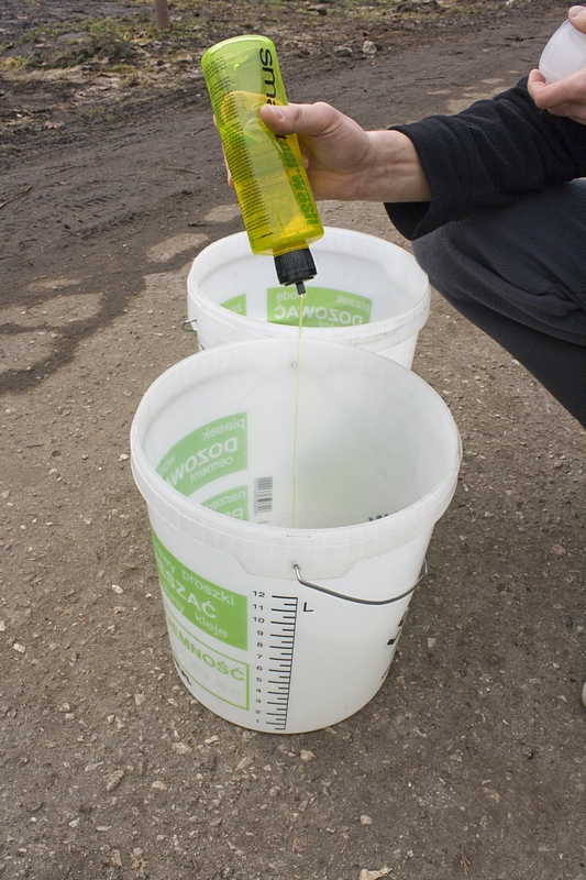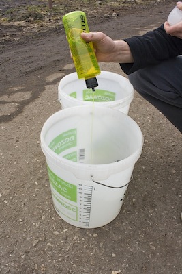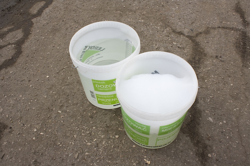 Jak widać woda bez szamponu w której płukaliśmy rękawicę podczas mycia jest bardzo zabrudzona, na dnie znajduje się dużo piasku.