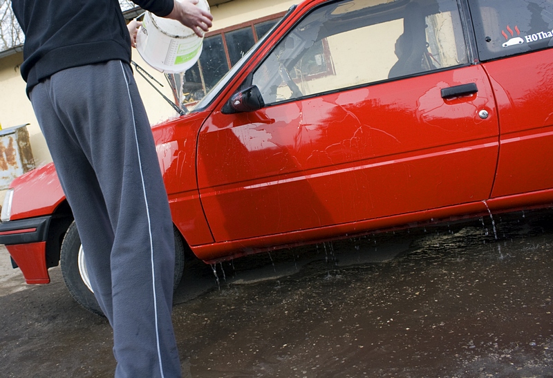 Bardzo ważną, wyjściową kwestią, jest to, aby szczególnie mocno zabrudzone auto (np. pokryte błotem) opłukać bieżącą wodą przed generalnym myciem.- Na koniec jeszcze porównanie tego samego elementu przed i po myciu.