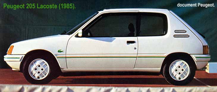 Peugeot 205 w wersji Lacoste to pierwszy nie do końca seryjny model. Jak i pierwsza próba uatrakcyjnienia 205 dla młodych nabywców. 205 Lacoste mimo ze zaprezentowany 20 lat temu !! nadal może się podobać ze względu na atrakcyjnie połączenie koloru białego z zielonym.