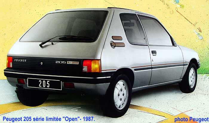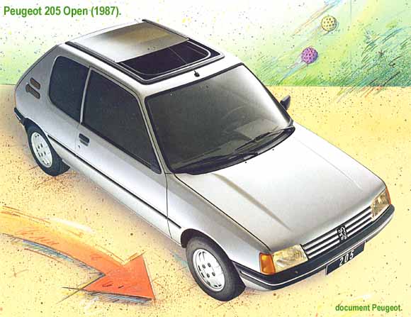 Peugeot 205 Open to kolejna po Lacoste wersja stanowiąca alternatywę dal seryjnych modeli 205. Open dzięki silnikowi 1,6 dawał również przyjemność z jazdy – stosunkowo mocny motor owocował polepszeniem osiągów, co przyciągało młodych nabywców. Model Open to w zasadzie pierwsza limitowana seria 205, a jak wiemy w przyszłości było ich trochę. 205 Open można uznać za prekursora małoseryjnych wersji 205 tym modelem Peugeot zaczął walczyć o klientów, którzy cenili sobie indywidualność i którym zwykły 205 nie wystarczał.