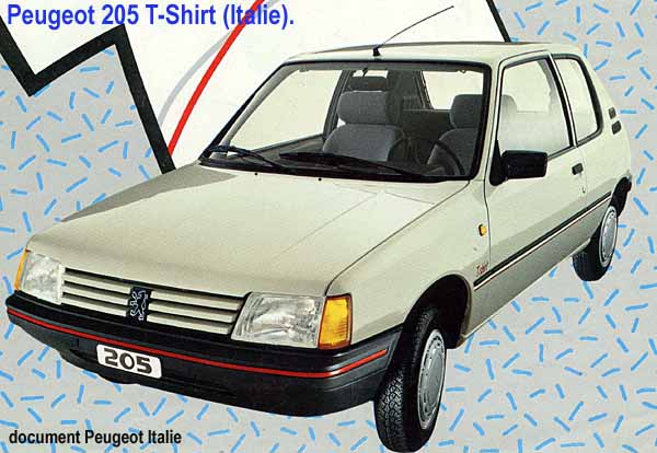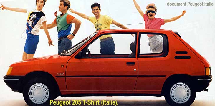 Peugeot 205 T-shirt przeznaczony był tylko na rynek włoski. W reklamach kreowano go na auto dla ludzi młodych , i zapewne zazwyczaj do takich odbiorców docierał.