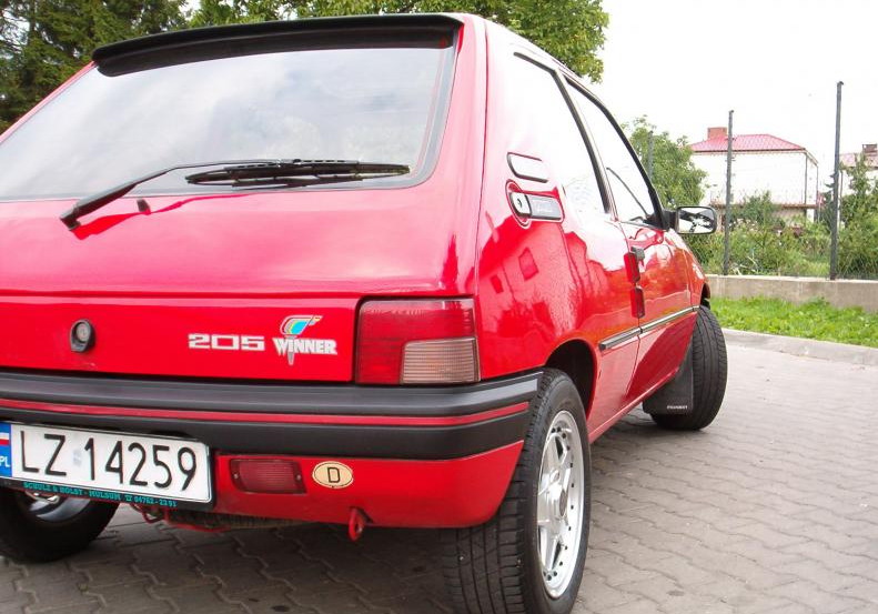 Ogólnie auto może się podobać, ponieważ uroku dodają mu wspomniane alufelgi. Winner ma zamontowane, koła 185/60/14 których wielkość rzuca się w oczy. Mimo że nie rożni się on zbytnio od innych 205 ma w sobie to coś, co przyciąga wzrok i na pierwszy rzut oka widać, że nie jest to do końca taki zwykły 205. Jedyne na co można narzekać to stosunkowo ubogie wyposażenie, ale tak już miało być ma on służyć do dynamicznej jazdy i wszelkie zbędne dodatki nie grają tu roli. Liczy się przyjemność z jazdy a tej na pewno nie zabraknie (jeśli chodzi o silnik 1,4)