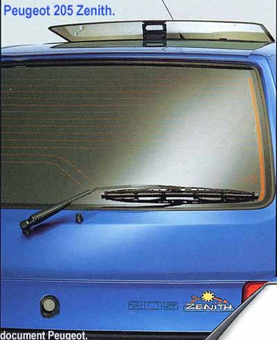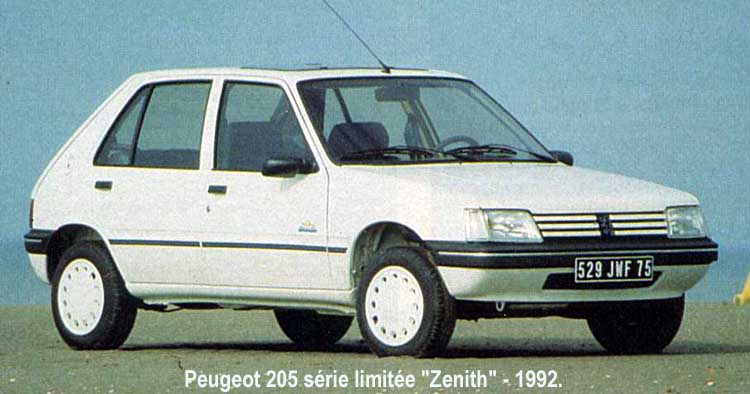 Krótka i rzadka wersja 205 „Zenith” była kolejną z ciekawych propozycji Peugeota na odświeżenie wizerunku 205. Auto w tej specyfikacji jak przystało na limitowane wersje ma ciekawą kolorystykę.